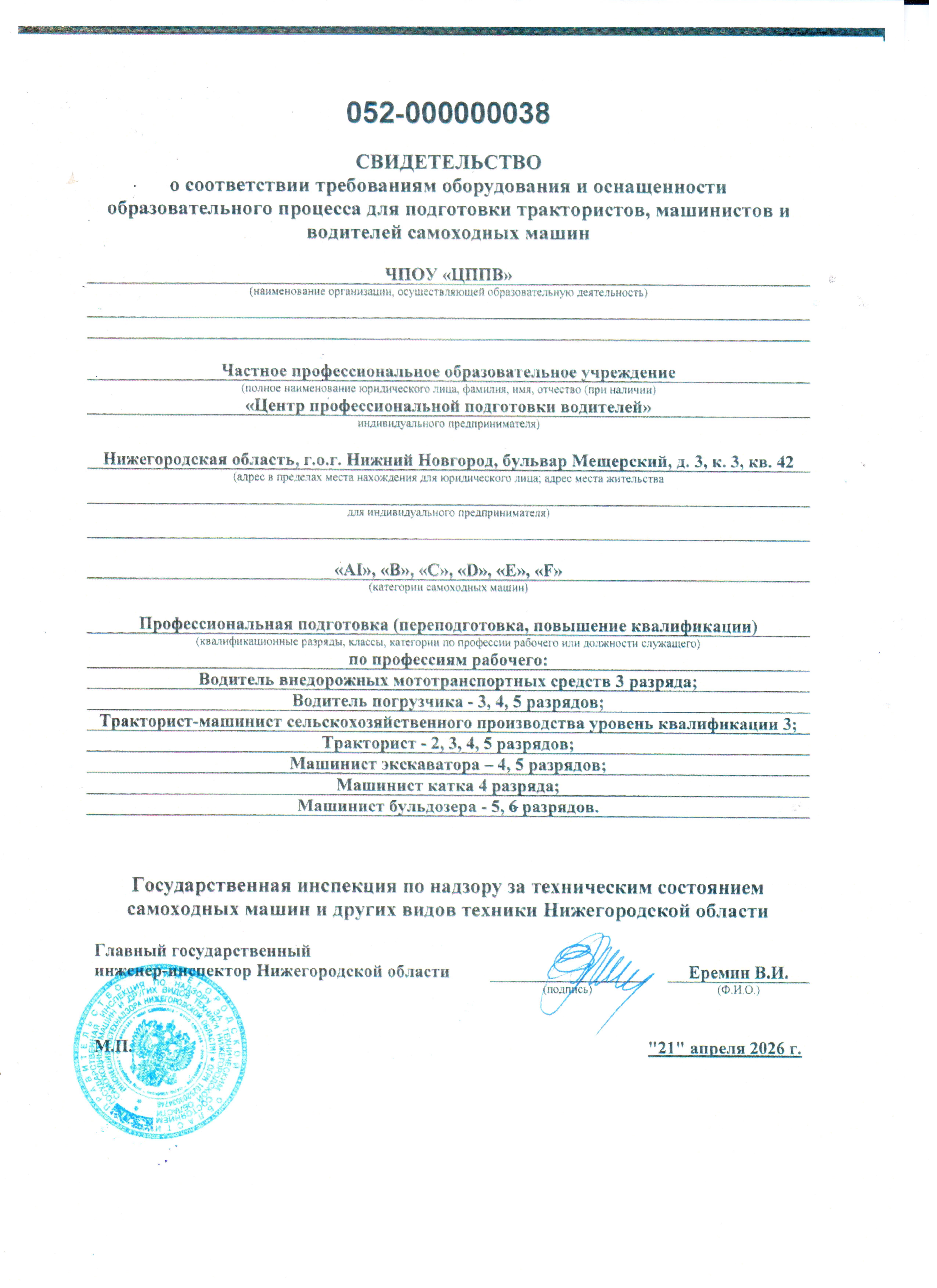 Частное профессиональное образовательное учреждение «Центр профессиональной подготовки водителей»